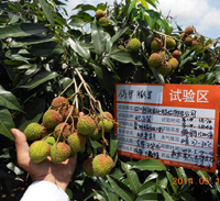 跟蹤后期試驗效果:荔枝果實坐果多、果實均勻、色澤良好。