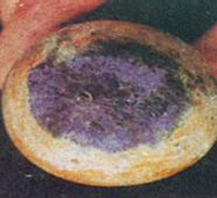 發(fā)生原因: 1、氣體原因。該病害的發(fā)生主要是受有害氣體污染的影響,特別是與二氧化硫的污染有關(guān)。表現(xiàn)在病果末端變黑變硬,果實(shí)過早成熟,無商品價值。該病病狀只出現(xiàn)在果的頂端,先在果頂出現(xiàn)淡黃色暈圈,逐漸發(fā)展為一淡褐色區(qū)域,并擴(kuò)大,變黑,最后完全覆蓋整個果頂部。隨著病情加重,黑色部分逐漸向果基方向延伸,占果實(shí)1/3~1/2后停止,果實(shí)其余部分仍保持正常顏色。病部組織失水萎縮、壞死,但不腐爛,且有堅(jiān)實(shí)感?拷敳糠N胚褐變壞死,摘下的果實(shí)果柄處無乳汁溢出,果實(shí)采收后不能正常黃熟,不能銷售。此外,還有果肉部分木栓化;有些果肉部分呈“海綿狀”,有中空現(xiàn)象;有的果肉形成“多團(tuán)塊組織”,果肉中含有分散的白色團(tuán)塊;“米粒狀病”,在果肉中有米粒大小的傷疤,傷疤的四周有棉花狀物環(huán)繞等。以上這些癥狀,尚未檢出其危害的病原菌,均屬生理性病害的范疇。2、果實(shí)缺硼和鈣。