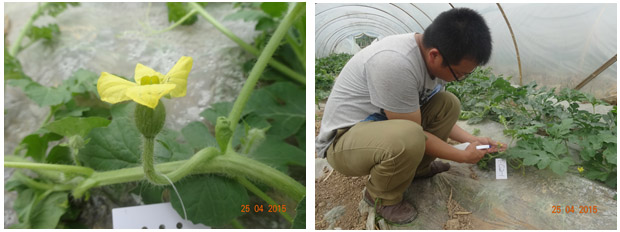 7、使用調(diào)節(jié)劑。在雌花開放當天或前一天,使用0.1%氯吡脲噴瓜胎,噴施時要均勻,噴正反兩面。一般在溫度低于18度使用0.1%氯吡脲10ml兌水1.5kg左右噴瓜胎,溫度在18-24度使用0.1%氯吡脲10ml兌水1.5-2kg,溫度25-30度使用0.1%氯吡脲10ml兌水1.5-3kg噴瓜胎可促進座瓜,提高座瓜率。