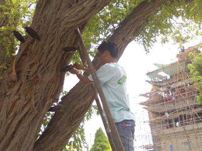 據(jù)駐寺學(xué)員納新輝介紹,2004年之前兩棵槐樹年年開花,2004年之后卻突然沒了動(dòng)靜,大家都以為它們要“不行了”。 2011年,永寧縣林業(yè)局派專家前來(lái)為老樹“看病”并開出“處方”。經(jīng)過三年多“治療”和“休養(yǎng)”,兩棵百年古槐再次鮮花怒放,恢復(fù)了往夕風(fēng)采,成為納家戶一道靚麗風(fēng)景。